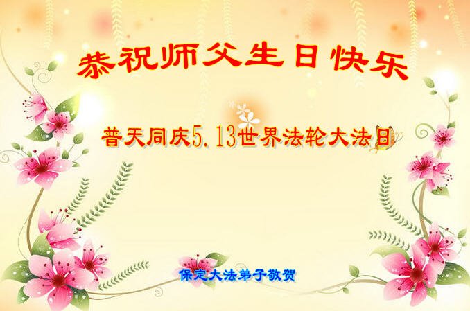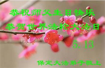 河北保定市大法弟子恭贺法轮大法日!恭祝师父生日快乐!