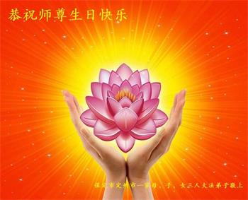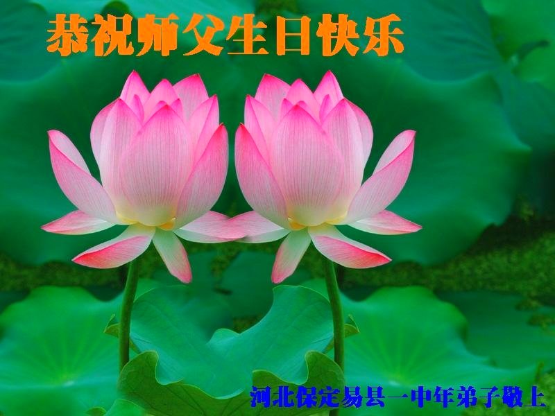 师父好! 感谢师父传大法! 感谢师父救度! 祝师父生日快乐! 普天同庆世界法轮大法日! 河北保定易县一中年大法弟子恭祝师父生日快乐!