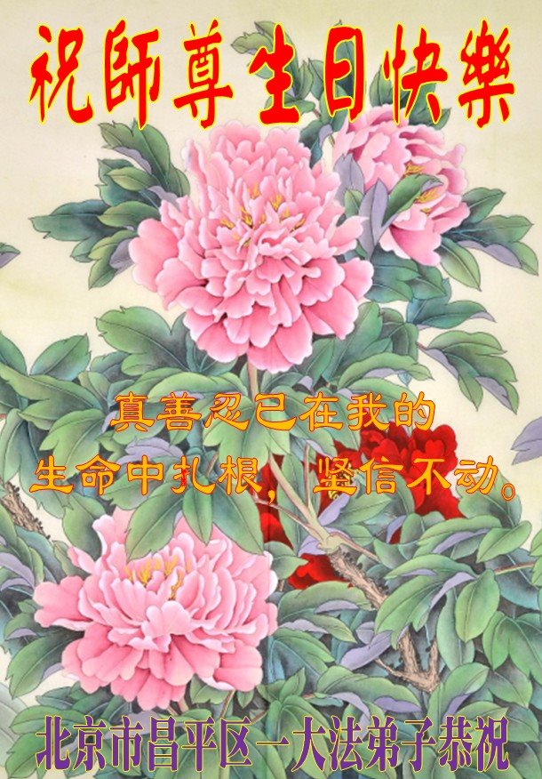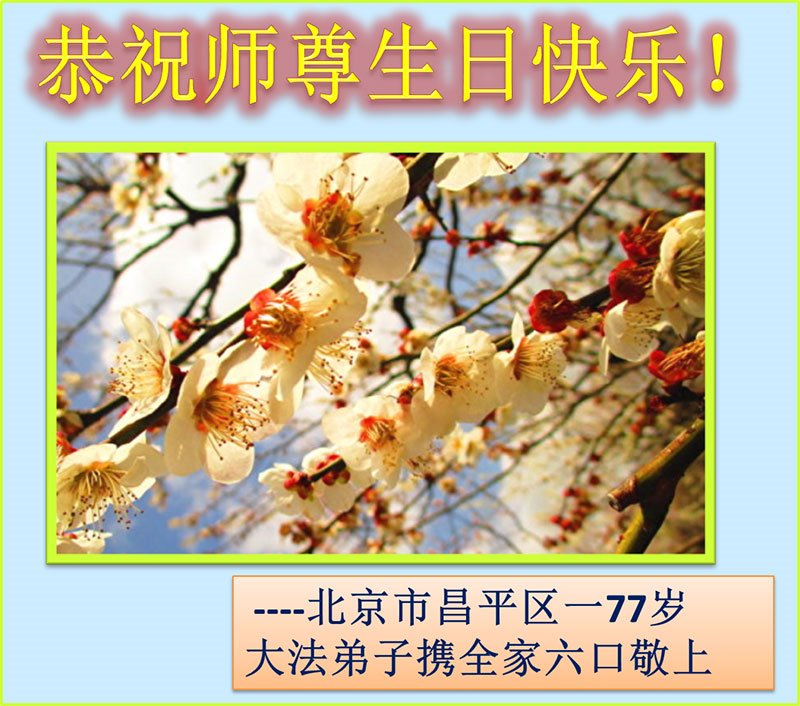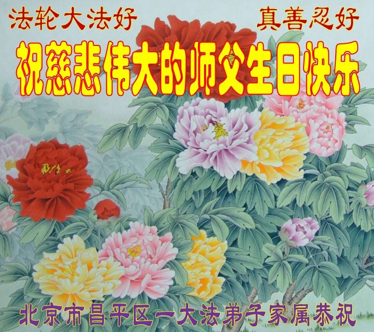 北京市昌平区一大法弟子家属祝慈悲伟大的师父生日快乐!法轮大法好!真善忍好!