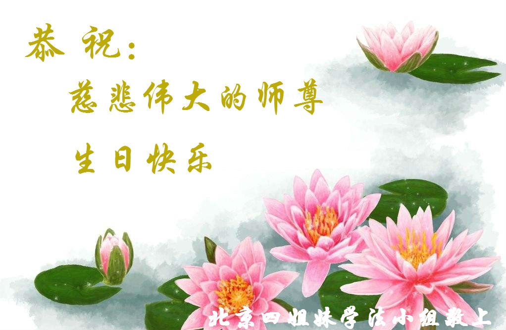 感谢师父慈悲救度!我一定修好自己多学法,做好三件事,跟师父回家。 北京市昌平区一大法弟子恭祝师父生日快乐!