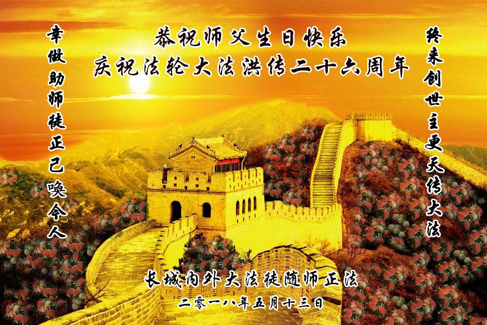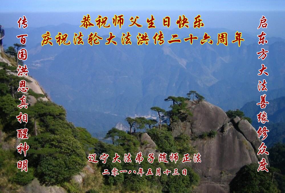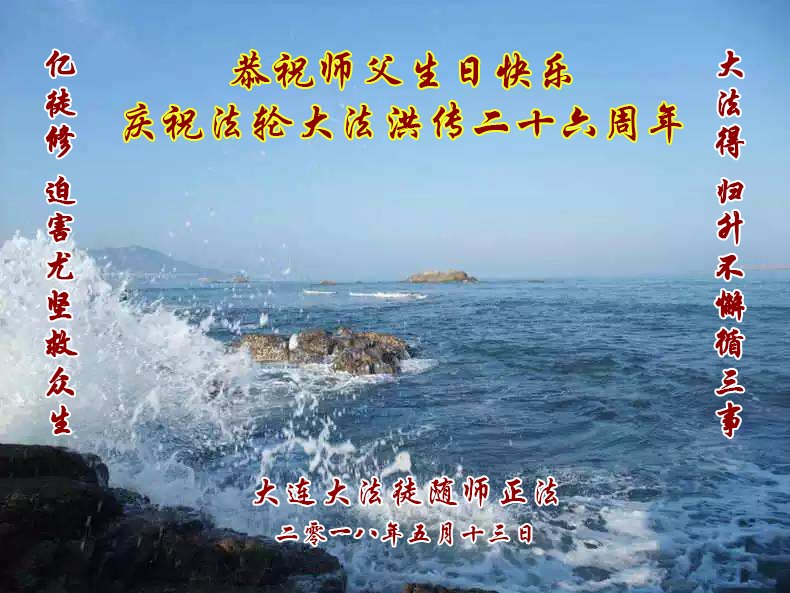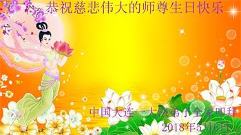 【明慧网二零一八年五月八日】 辽宁省大连大法弟子遥祝慈悲伟大的师尊华诞快乐!世界同庆法轮大法日!
