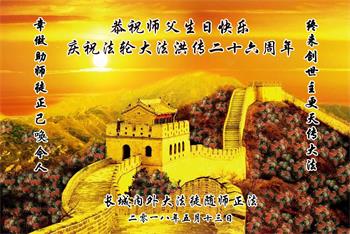 辽宁省大连大法弟子祝法轮大法日!恭祝师父生日快乐!