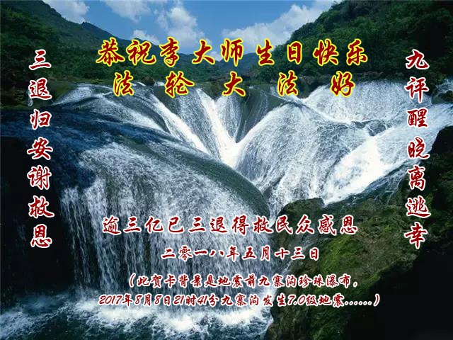 在正法即将结束的关键时刻,我们一家三口大法弟子一定不辜负师父的期盼,努力做好三件事,坚修大法心不动,修好自己,善念救人,圆满随师还! 辽宁省大连市庄河市大法弟子恭祝慈悲伟大的师尊生日快乐!庆祝513法轮大法日!师父辛苦了!叩拜师尊!