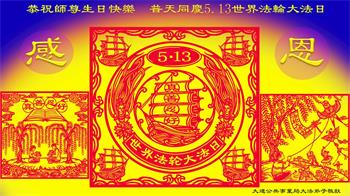 5.13这个殊胜的日子,对我们每个大法弟子来说荣幸又自豪,感恩师父洪传大法救度苍生,弟子跪拜师父。合十! 辽宁省大连大法弟子恭祝世界法轮大法日!恭祝师父生日快乐!