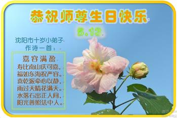 辽宁省沈阳十岁小弟子恭祝师父生日快乐!