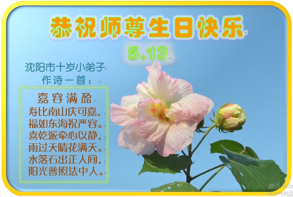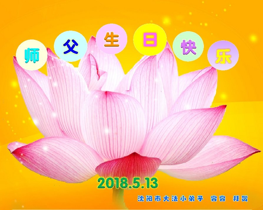 【明慧网二零一八年五月八日】 辽宁省沈阳市大法小弟子容容恭祝师父生日快乐!