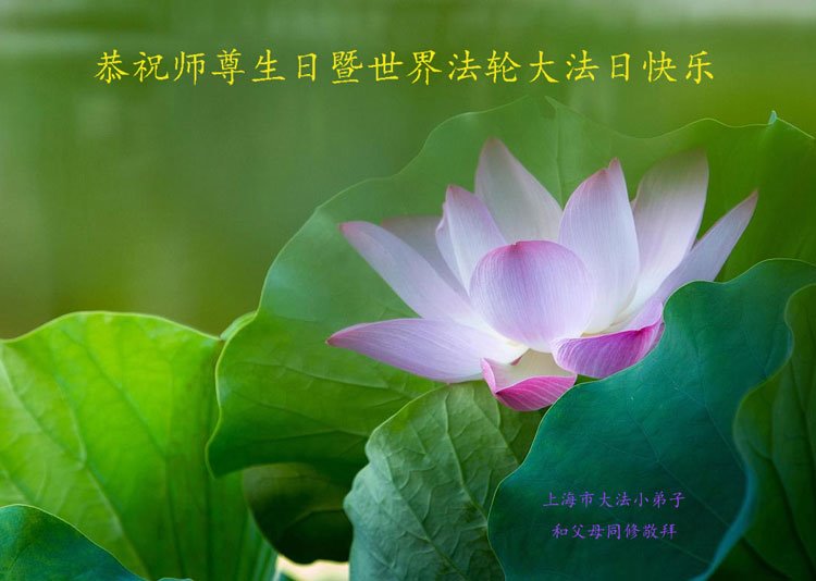 上海大法小弟子和父母同修恭祝师尊生日暨世界法轮大法日快乐!