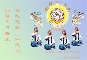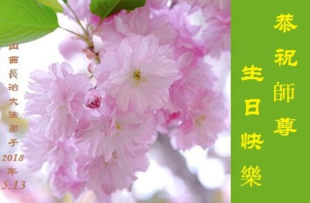 【明慧网二零一八年五月八日】 山西大法弟子怀着无比感恩的心恭祝慈悲伟大师尊生日快乐!恭贺大法洪传世间26周年!