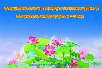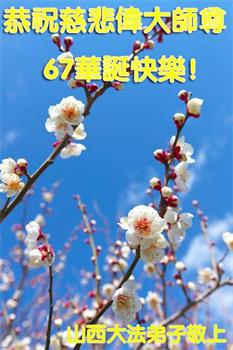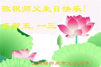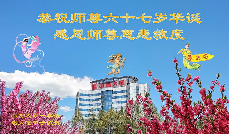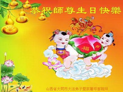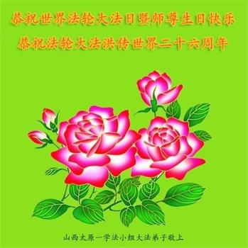 师尊啊,您辛苦啦!二十多年来,弟子时时感到师尊的慈悲保护。感恩的心真的无以言表,只有学好法,严格要求自己, 尽力做好三件事以报师恩。 山西太原一学法小组大法弟子恭祝世界法轮大法日暨师尊生日快乐!