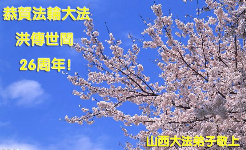 我们感恩“5.13”这个既平凡又伟大的日子给人类带来的光明与希望!我们感恩“5.13”!感恩法轮大法!感恩慈悲伟大的师尊为救度众生,为挽救穹宇坏、灭带领我们走过风风雨雨的26年!师尊您巨大的承受与艰辛的付出,我们无以回报!我们无限感恩!师尊您辛苦啦!正法还没有结束,救度众生是我们的责任、使命!我们还要在救度众生中修好自己!叩拜师尊!感恩师尊! 山西大法弟子怀着无比感恩的心恭祝慈悲伟大师尊生日快乐!恭贺大法洪传世间26周年!