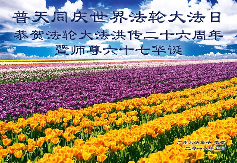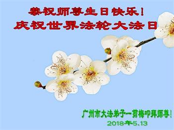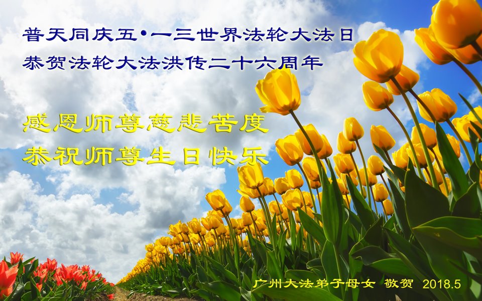 【明慧网二零一八年五月八日】 广东广州大法弟子恭祝师尊生日快乐!普天同庆世界法轮大法日!