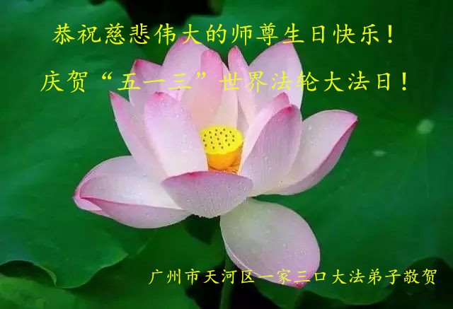 广东省广州市天河区一家三口大法弟子恭祝慈悲伟大的师尊生日快乐!庆贺“五一三”世界法轮大法日!庆祝法轮大法洪传二十六周年!