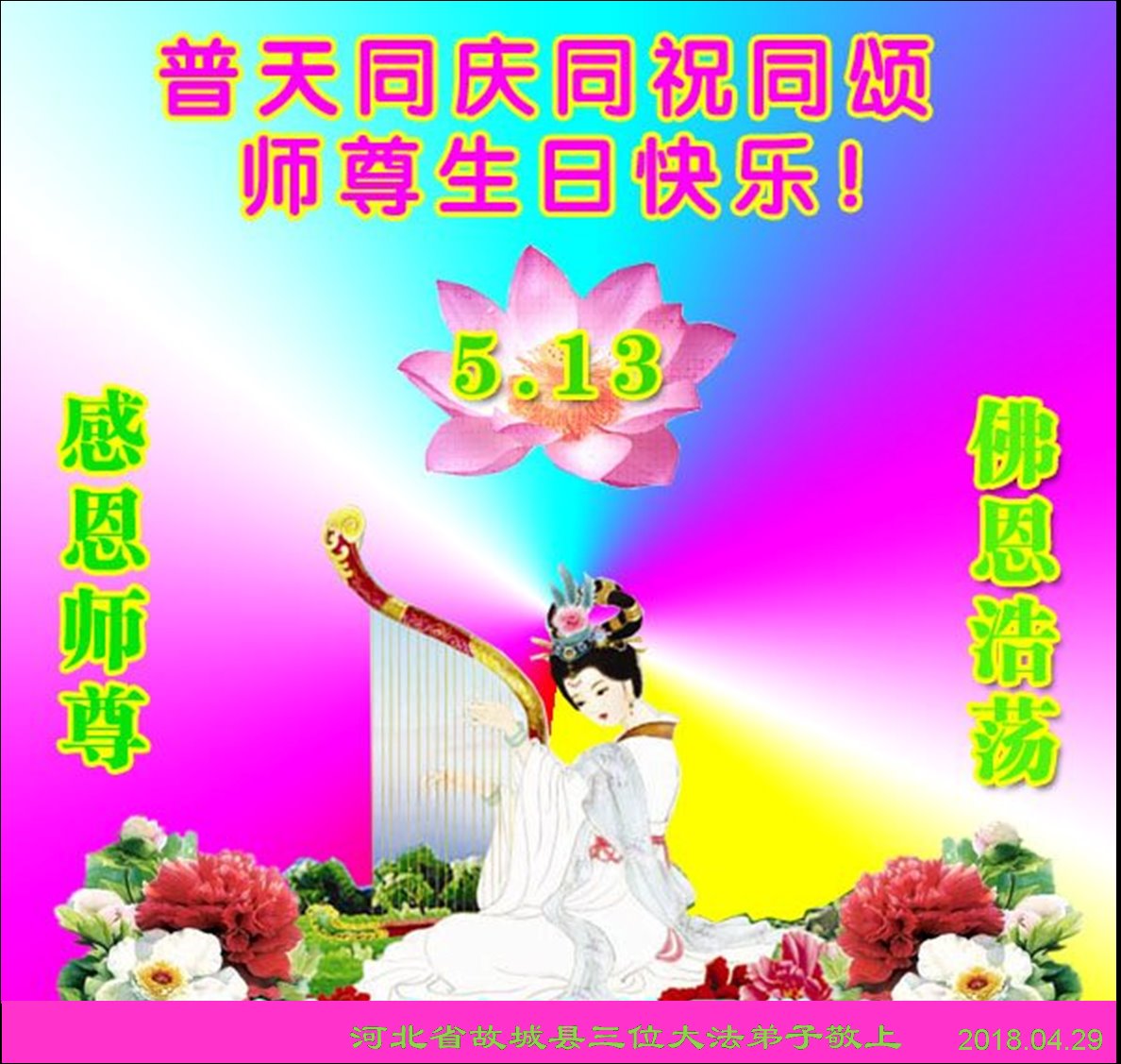 恭祝师父二零一八年生日快乐! 河北华北石油大法弟子恭贺513世界法轮大法日!祝师父生日快乐!师父辛苦了!