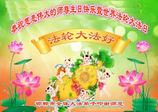 河北省邯郸全体大法弟子恭祝慈悲伟大的师尊生日快乐!暨世界法轮大法日!