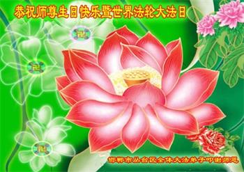 河北省邯郸市丛台区全体大法弟子恭祝慈悲伟大的师尊生日快乐!暨世界法轮大法日!