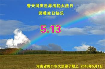 普天同庆 五一三世界法轮大法日 恭祝师父生日快乐! 河南许昌市建安区一家庭资料点大法弟子恭祝师父生日快乐! 河南周口一资料点的老年大法弟子祝师父生日快乐!