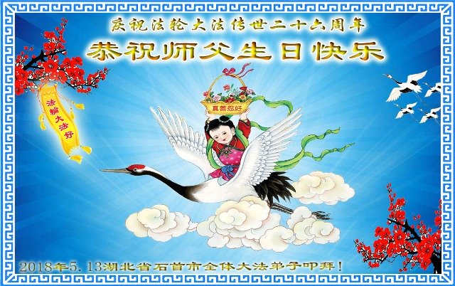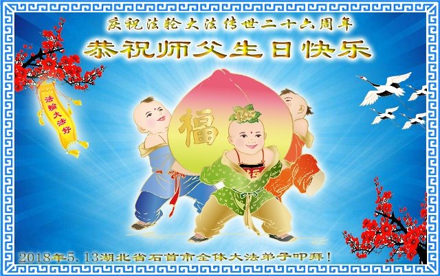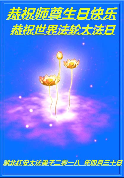 【明慧网二零一八年五月八日】 湖北省黄冈市麻城市大法弟子恭贺世界法轮大法日暨师尊华诞!
