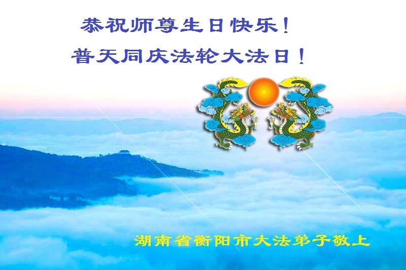 湖南省衡阳市珠晖区一大法弟子全家恭祝师父生日快乐!恭贺世界法轮大法日!