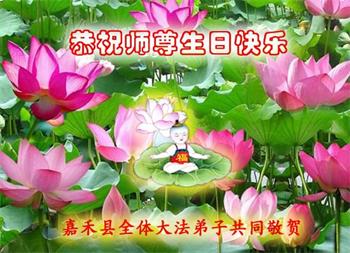 【明慧网二零一八年五月八日】 湖南省郴州市嘉禾县全体大法弟子恭祝师尊生日快乐!