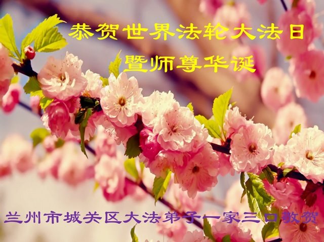甘肃兰州市城关区大法弟子一家三口恭贺法轮大法日暨师尊华诞!