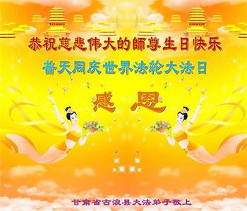 甘肃省武威市古浪县大法弟子恭祝慈悲伟大的师尊生日快乐!普天同庆世界法轮大法日!