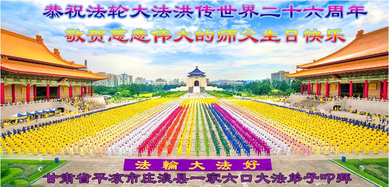 甘肃省平凉市庄浪县一家六口大法弟子恭祝师尊生日快乐!恭贺法轮大法日!
