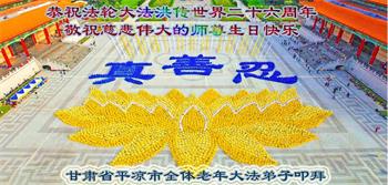 甘肃省平凉市全体老年大法弟子恭祝师尊生日快乐!恭贺法轮大法日!