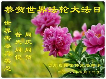 贵州贵阳全体大法弟子恭贺世界法轮大法日,世界需要真善忍,普天同祝、同庆、同贺!