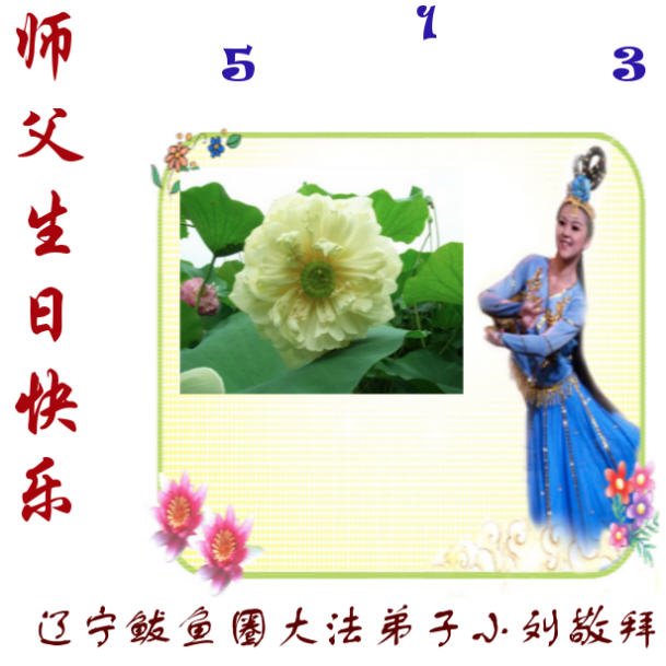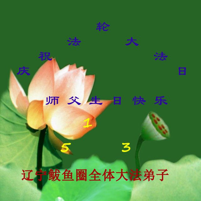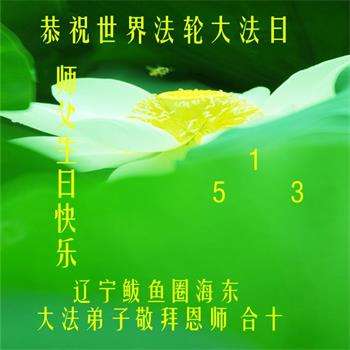 辽宁鲅鱼圈一大法弟子恭祝师父生日快乐!恭祝世界法轮大法日!