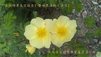 陕西一家大法弟子恭祝师父生日快乐!恭贺世界法轮大法日!
