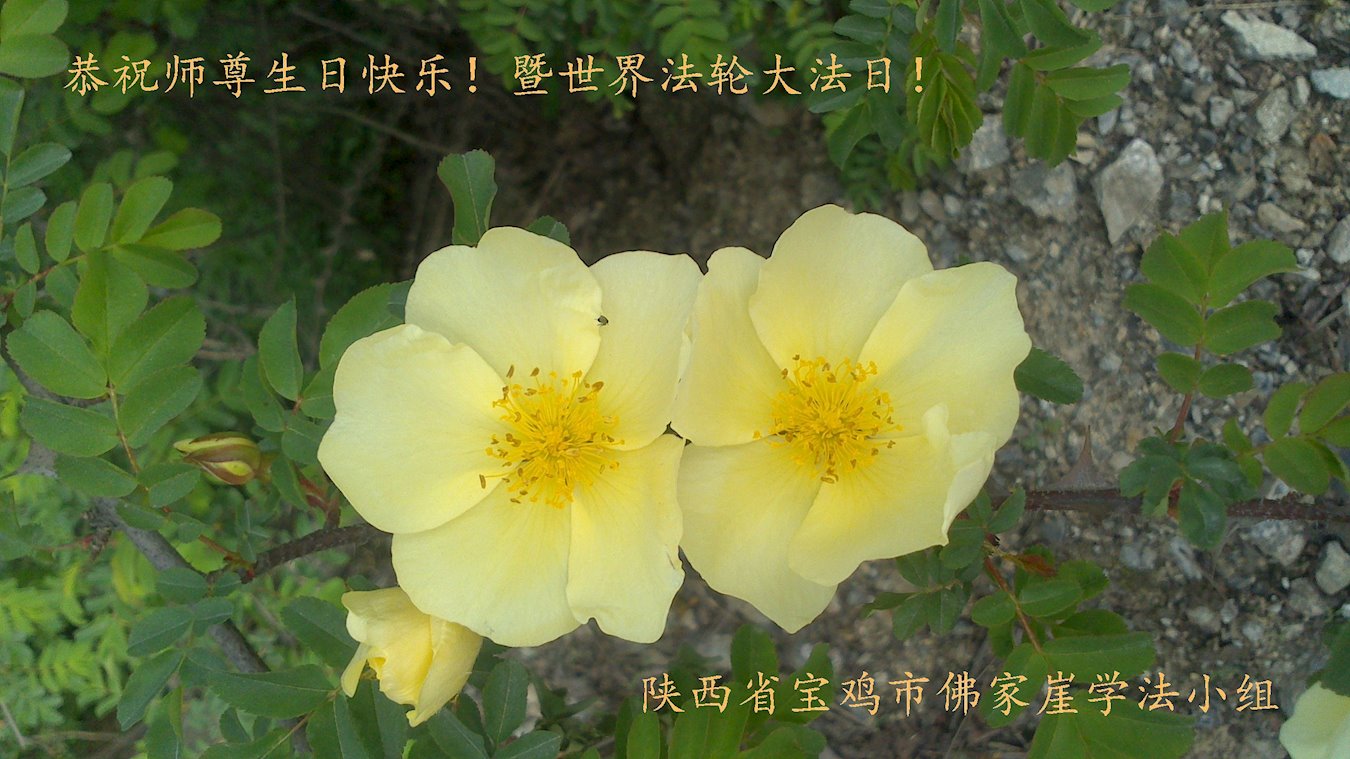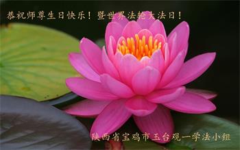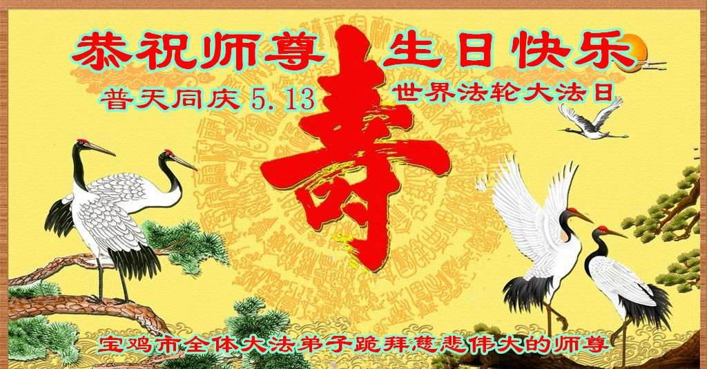 陕西省宝鸡市全体大法弟子恭祝慈悲伟大的师尊生日快乐!庆贺5.13世界法轮大法日!