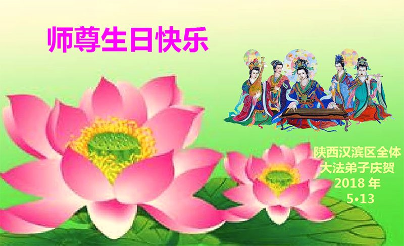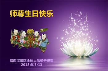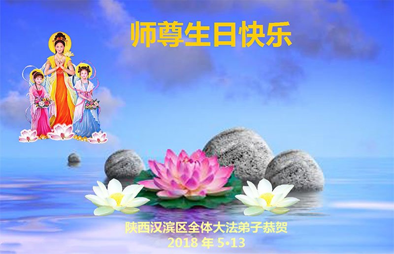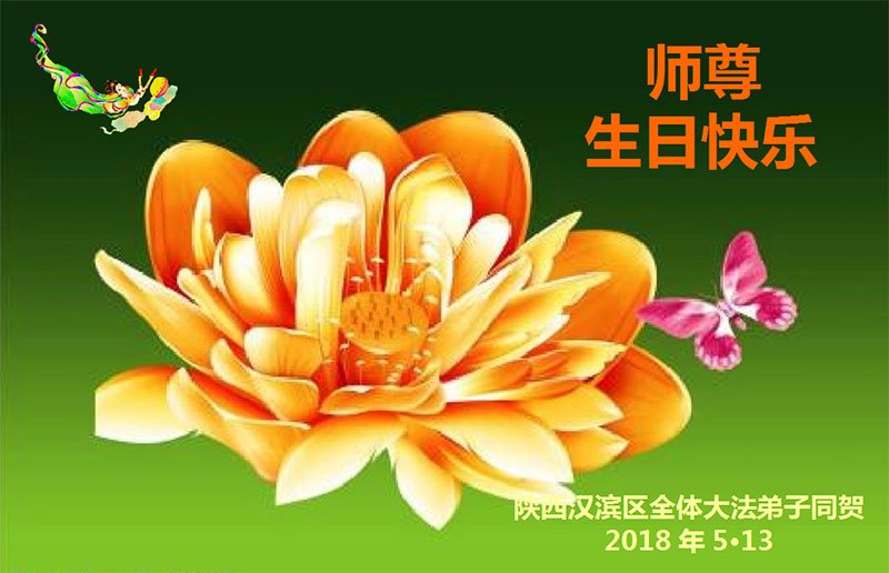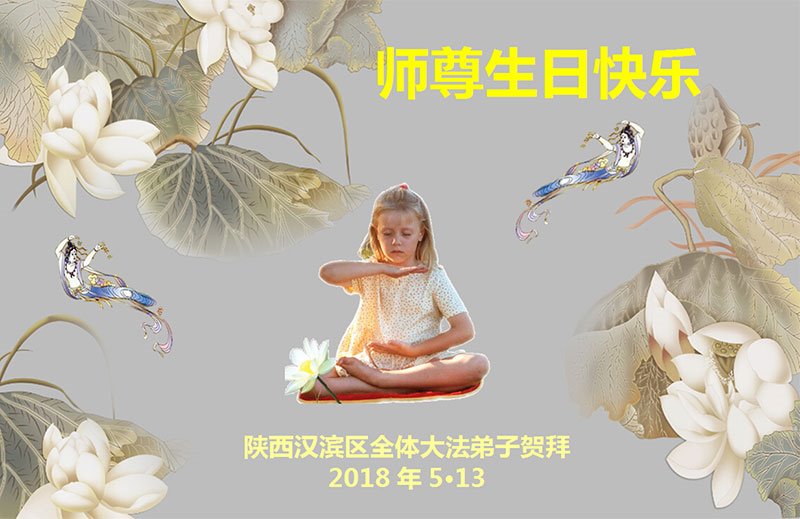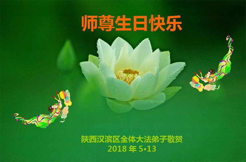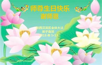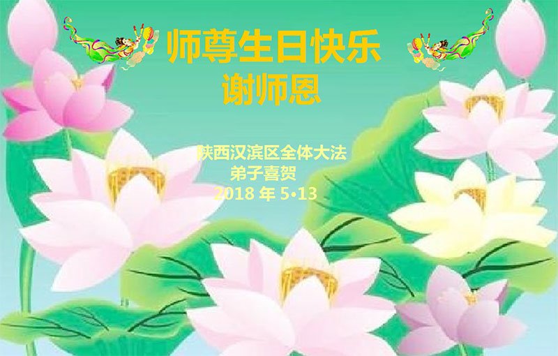【明慧网二零一八年五月八日】 陕西省安康市汉滨区全体大法弟子恭祝慈悲伟大的师尊生日快乐!