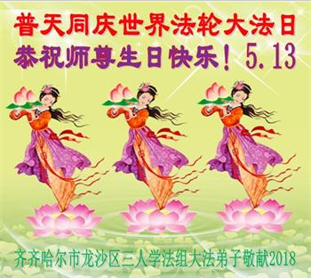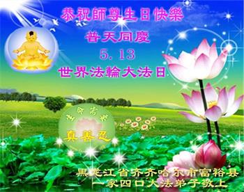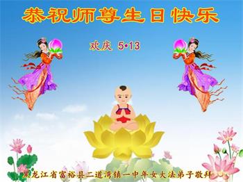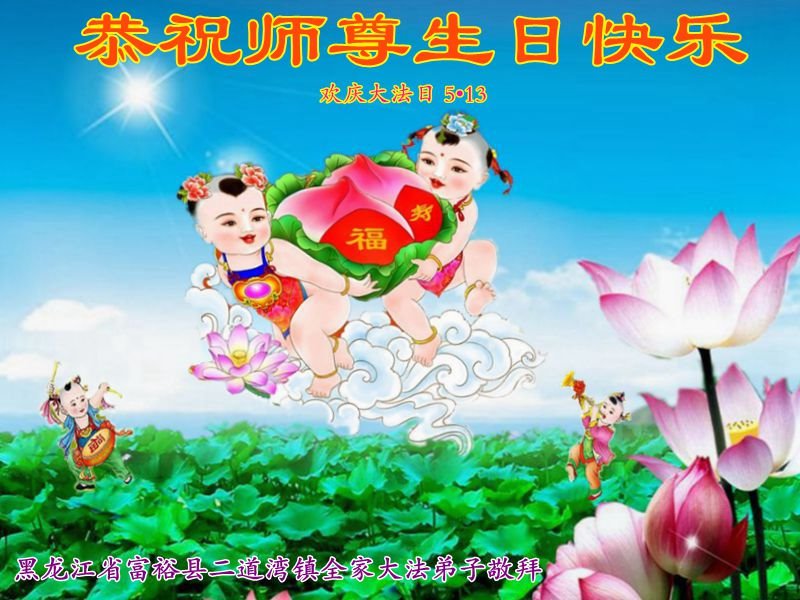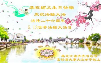 【明慧网二零一八年五月八日】 黑龙江省齐齐哈尔市富裕县二道湾镇大法弟子恭祝师尊生日快乐!