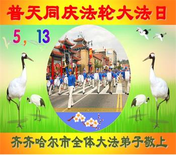 普天同庆“五一三”世界法轮大法日! 我们一定努力做好三件事,多学法,学好法,修好自己,多救众生,助师正法,兑现誓约。 黑龙江省齐齐哈尔市龙沙区三人学法组大法弟子敬上! 黑龙江省齐齐哈尔市全体大法弟子恭祝伟大师尊生日快乐!