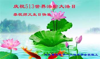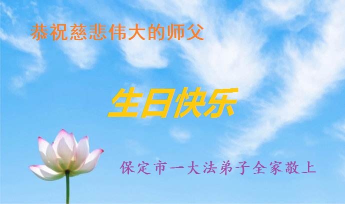河北省保定一大法弟子全家恭祝慈悲伟大的师父生日快乐!