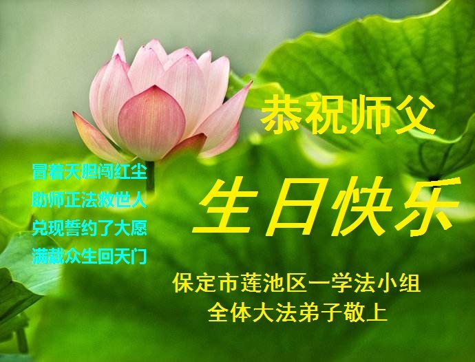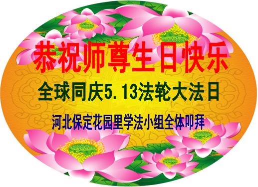 河北保定市百莲学法小组大法弟子恭祝师尊生日快乐!