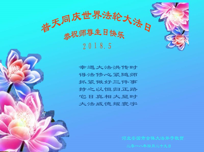 河北省保定市安国市全体大法弟子普天同庆世界法轮大法日!恭祝师尊生日快乐!
