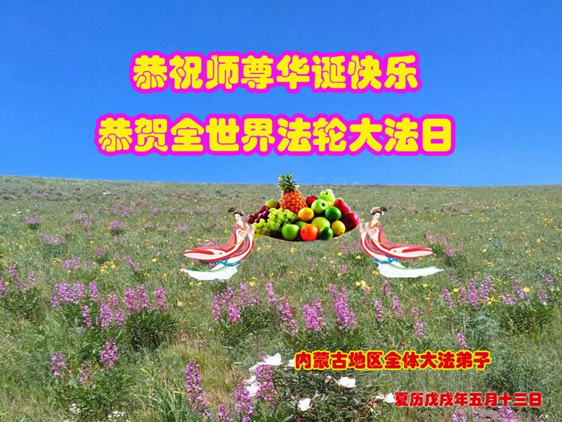 内蒙古草原上的大法弟子恭祝师尊生日快乐! 内蒙古地区全体大法弟子恭祝师尊华诞快乐!恭贺全世界法轮大法日!