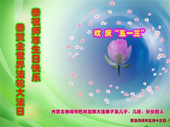 内蒙古一大法弟子携全家恭贺法轮大法日!