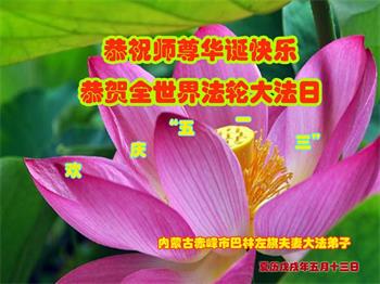 内蒙古赤峰市巴林左旗夫妻大法弟子恭祝师尊华诞快乐!恭贺全世界法轮大法日!