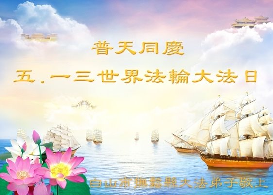 快乐!暨世界法轮大法日! 师尊您辛苦了!大法弟子想念您!师父让我们知道了生命的真正意义,弟子一定多学法,做好三件事,更知道了救人 的紧迫。要更加精進、精進、再精進,以谢师恩。 吉林省白山市抚松县大法弟子恭祝师尊生日快乐!暨大法洪传二十六周年!
