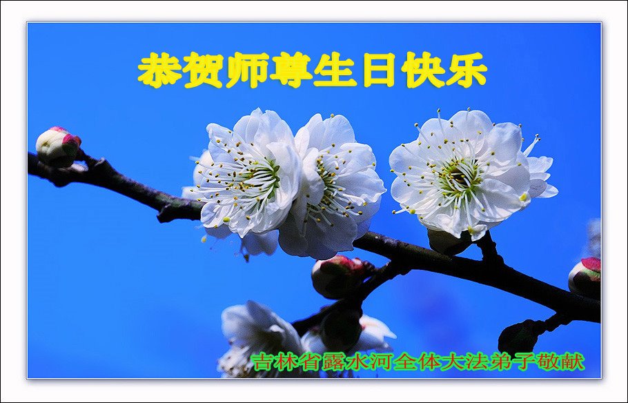 弟子无限感激师尊慈悲苦度!弟子一定努力学好法,在法上提高,清除一切人心杂念,做好三件事,跟师尊回家。 吉林省白山市抚松县露水河全体大法弟子恭祝慈悲伟大的师尊生日快乐!