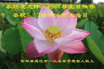 师父伟大!法伟大!感恩师父慈悲救度!谢谢师父对家人的一路呵护!师父辛苦了! 吉林省白城市大法弟子庆贺“5.13”世界法轮大法日!恭祝慈悲伟大的师尊生日快乐!