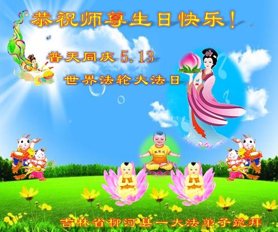 吉林省通化市柳河县一大法弟子恭祝慈悲伟大的师尊生日快乐!普天同庆5.13世界法轮大法日!