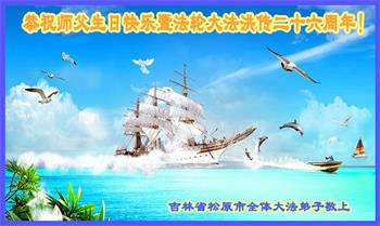 吉林省松原市大法弟子恭贺法轮大法日,祝师父生日快乐!