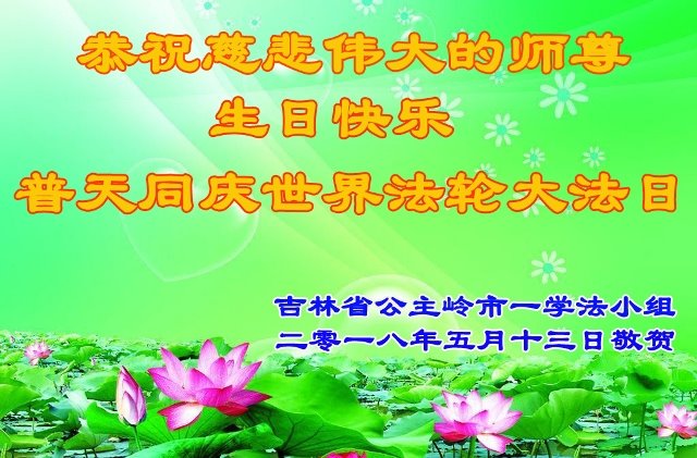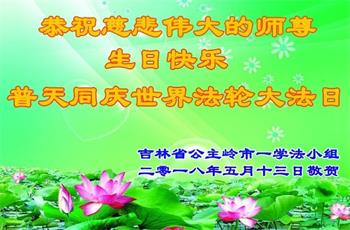 吉林省四平市公主岭市一学法小组恭祝慈悲伟大的师尊生日快乐!普天同庆世界法轮大法日!