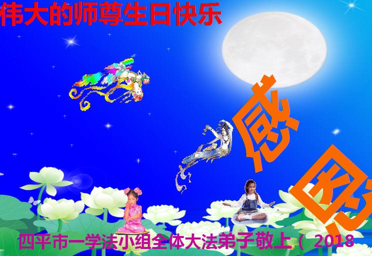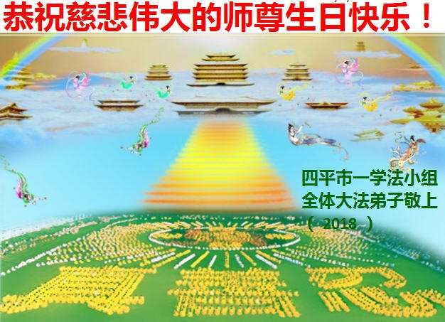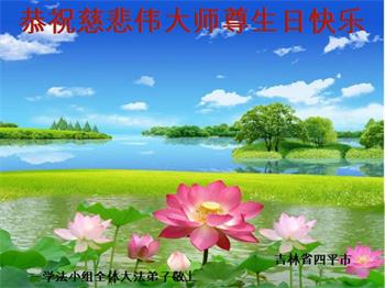 感谢师尊对大法弟子的慈悲救度!努力做好救度世人的事。 吉林省四平市一学法小组全体大法弟子恭祝慈悲伟大师尊生日快乐!