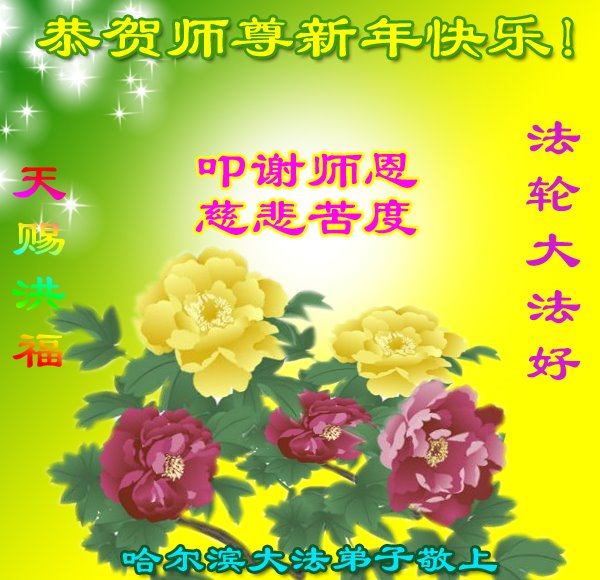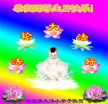 黑龙江省哈尔滨大法弟子及全家五人恭贺法轮大法日!恭祝师尊生日快乐!谢谢师尊慈悲苦度!师父辛苦了!