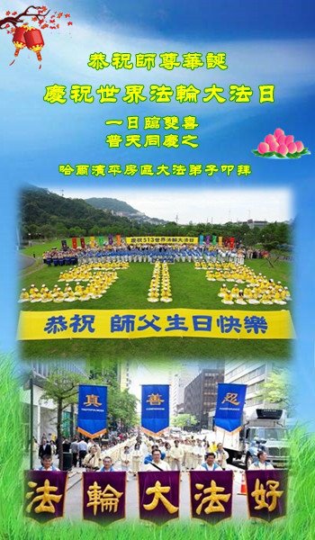 黑龙江省哈尔滨利民区学法组全体大法弟子恭贺法轮大法日!恭祝师尊生日快乐!