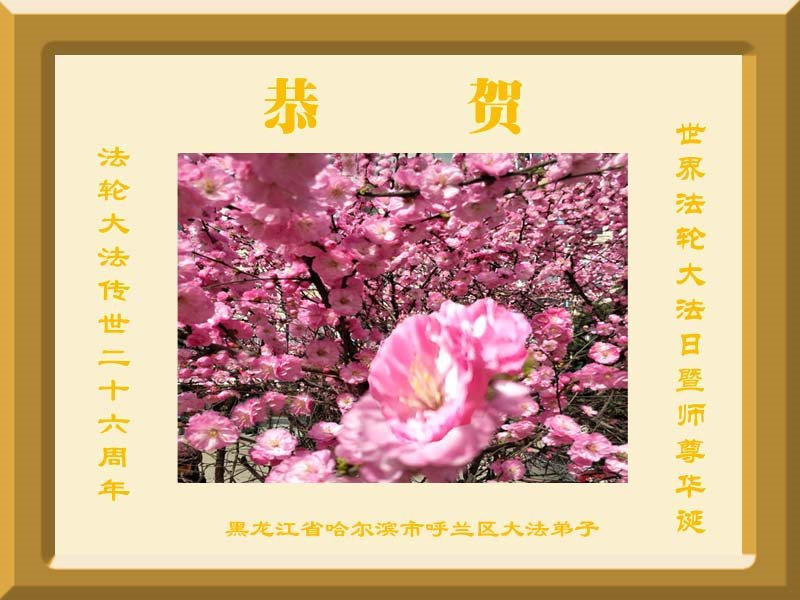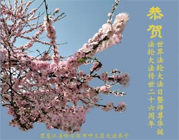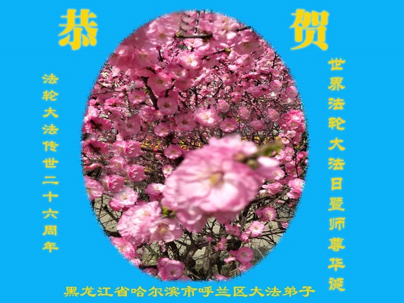 黑龙江省哈尔滨市呼兰区大法弟子恭贺世界法轮大法日暨师尊华诞!恭贺法轮大法传世二十六周年!